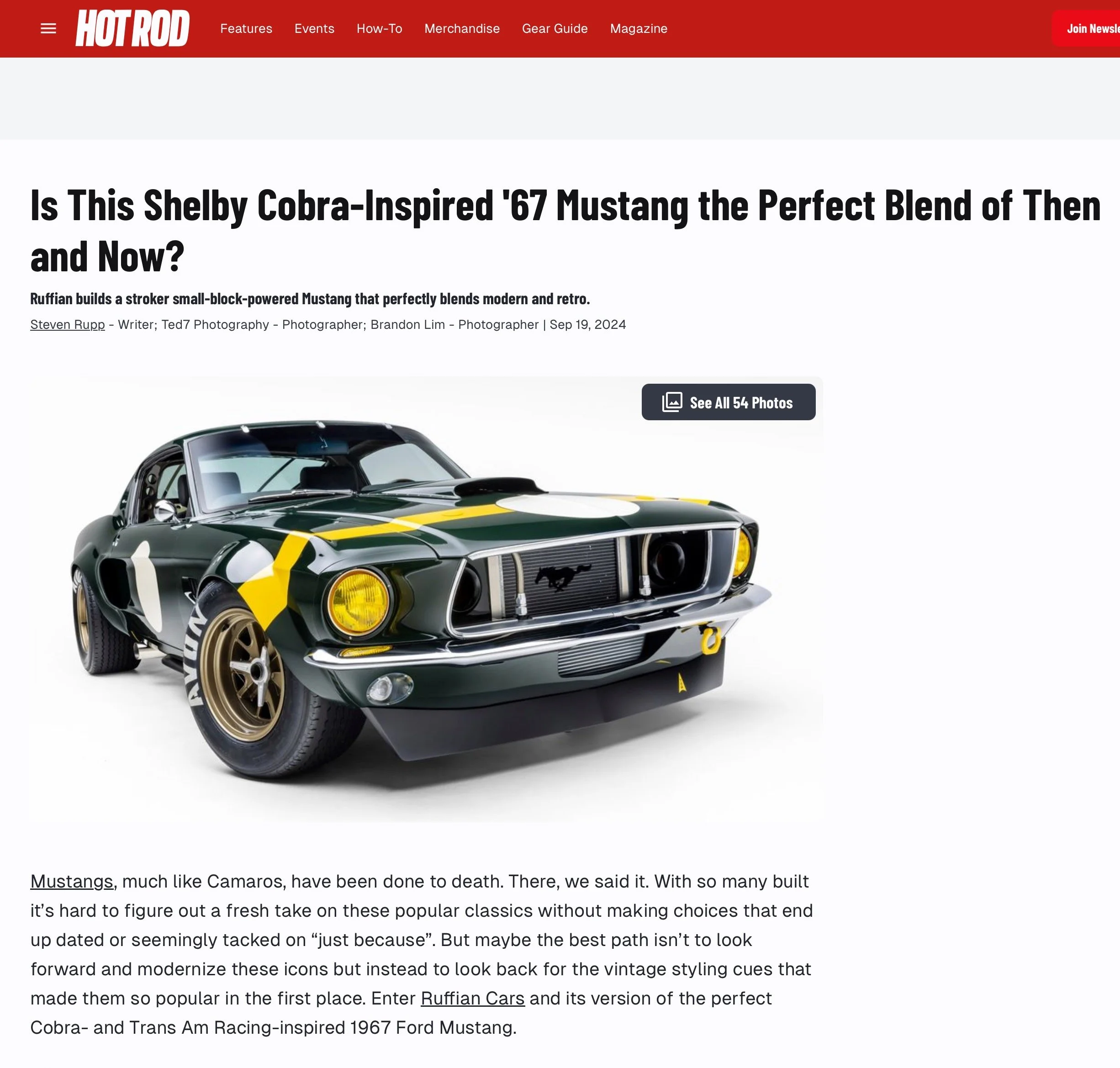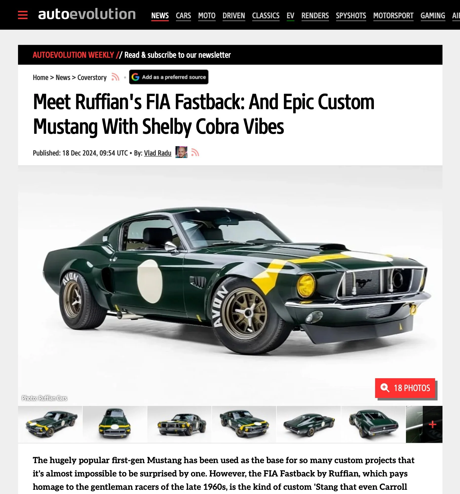 Chris Ashton of Ruffian cars did just that. As Chris explains: It’s a vintage gentleman’s racer - a lot of Cobra and a little European influence. It’s a street car that’s been inspired by racing, which feels vintage, but with a tighter suspension.
